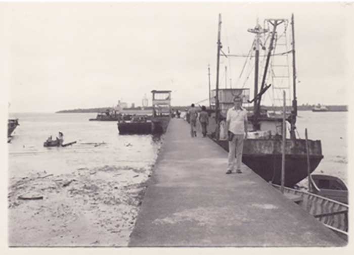 1977 viaje a Brasil y Colombia para conocer experiencias de pastoral afro y promover un encuentro entre Ecuador, Colombia y Panamá. Foto: Puerto de Buenaventura (1977).