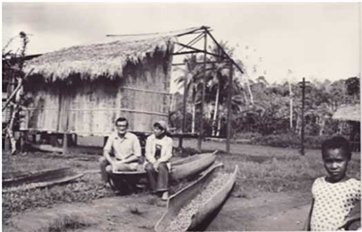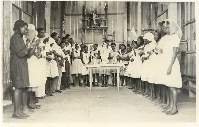 Foto con un grupo de personas en una capilla de un pueblo de la Costa Pacifica 1971