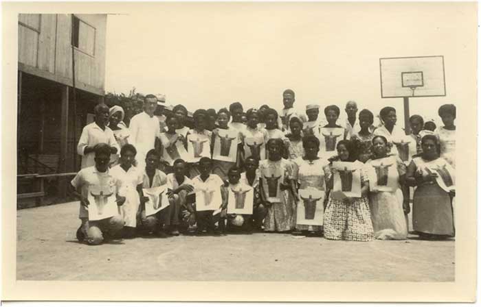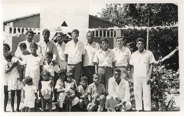 Foto con un grupo de personas en una capilla de un pueblo de la Costa Pacifica 1971